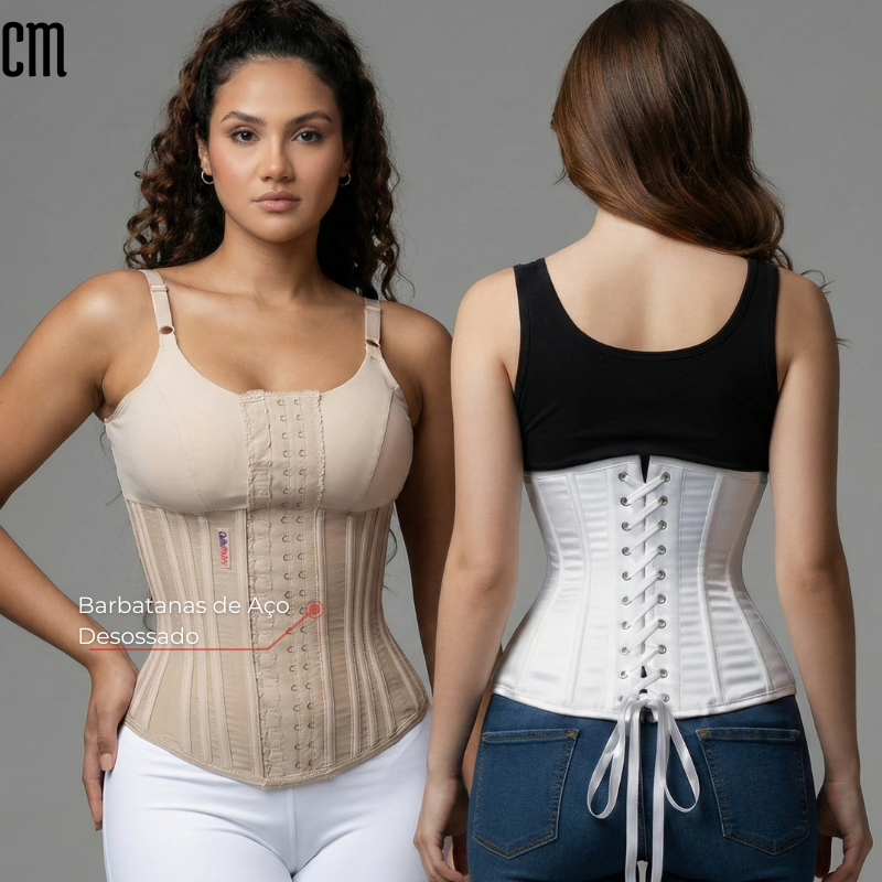 Espartilhos e cintas com barbatanas de aço oferecem modelagem imediata, alta sustentação e definição real da cintura. Não enrolam, não deformam e ajudam a melhorar a postura, garantindo conforto, segurança e uma silhueta mais firme desde o primeiro uso.