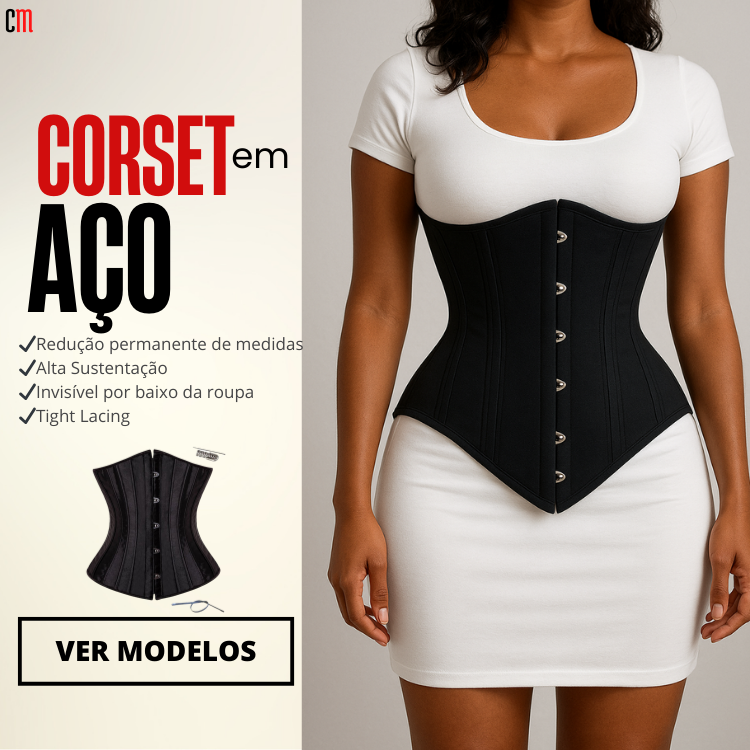 Os Modelos com Barbatanas de Aço possuem maior eficácia de modelagem da cintura pois é mais resistente e maleável, feito em aço desossado, ideal para prática de perda de medidas.